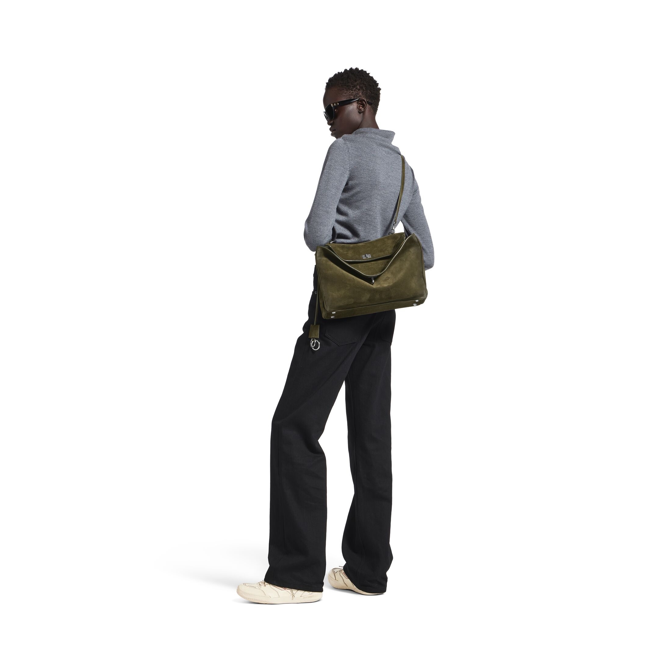 Сумка Rodeo Medium из вощеной телячьей кожи цвета хаки и гладкой телячьей кожи, фурнитура из старого серебра.